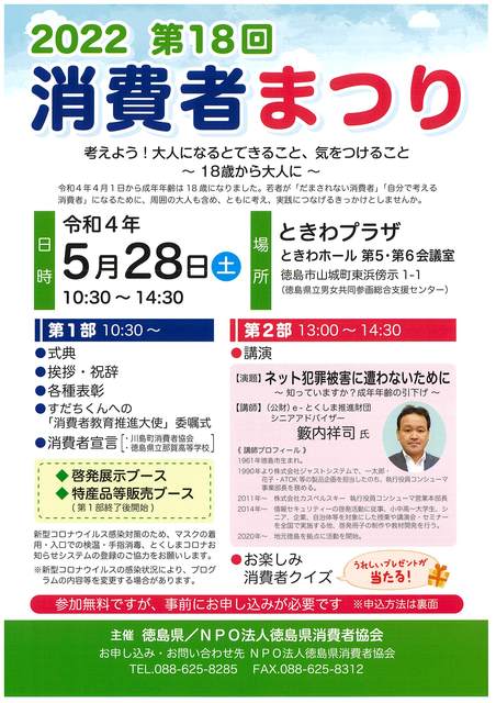 令和4年5月28日(土)ときわプラザに於いて、第18回消費者まつりを開催します!